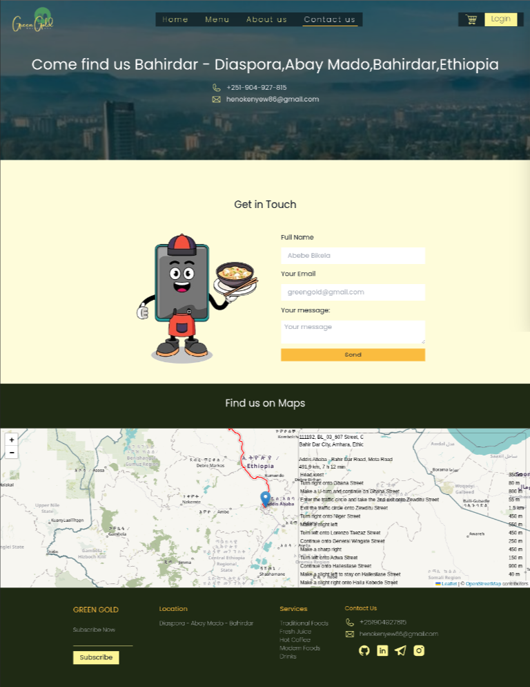 Green Gold Restaurant is a website made for Green Gold Restaurant and It is to be scaled to online ordering platform.